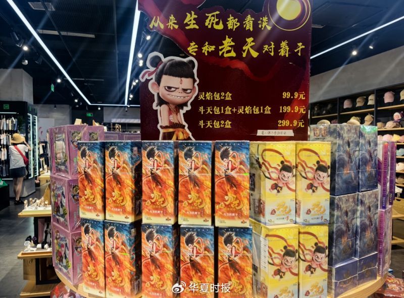 《华夏时报》记者在不同时段走访北京各大商圈时了解到,哪吒IP相关卡牌一直在持续推新,而一旦有新品上市,旧款卡牌便会悄然打折。8月5日,记者在南二环一家泡泡玛特门店发现,此前热销的《哪吒之魔童降世》系列盲盒均已售罄,《哪吒之魔童降世》抱抱系列搪胶脸毛绒玩具摆件也仅剩最后一个白龙敖丙。